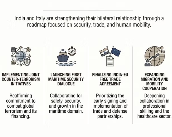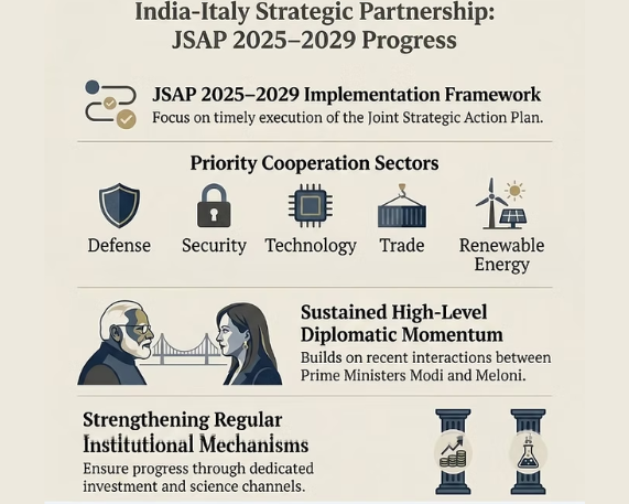 India and Italy held 9th round of Foreign Office Consultations (FOC) in New Delhi (March 2026) to review and expand bilateral cooperation across strategic sectors.